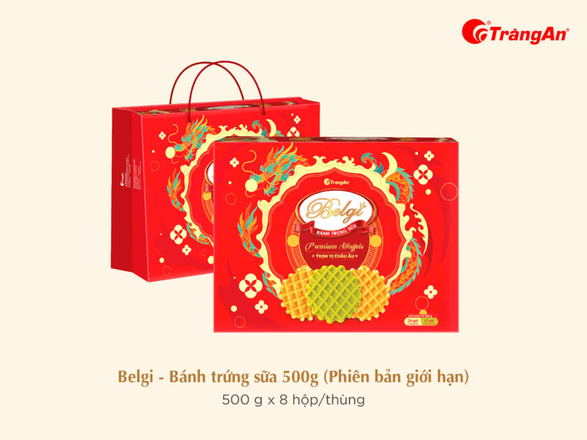 Bên trong Belggi Collection là sự đa dạng của những chiếc bánh Waffle cao cấp, với hai hương vị đặc trưng: bánh trứng sữa truyền thống thơm lừng và bánh vị lá dứa (hoặc trà xanh) độc đáo. Sự kết hợp màu sắc và hương vị này tạo nên trải nghiệm thưởng thức phong phú, làm phong phú thêm khay bánh kẹo ngày Tết.